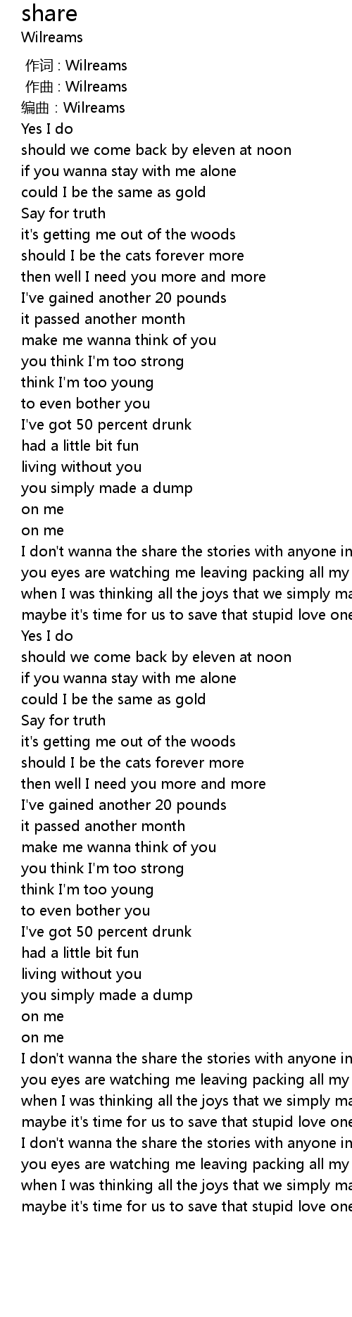 | [00:00.000] | 作词 : Wilreams |