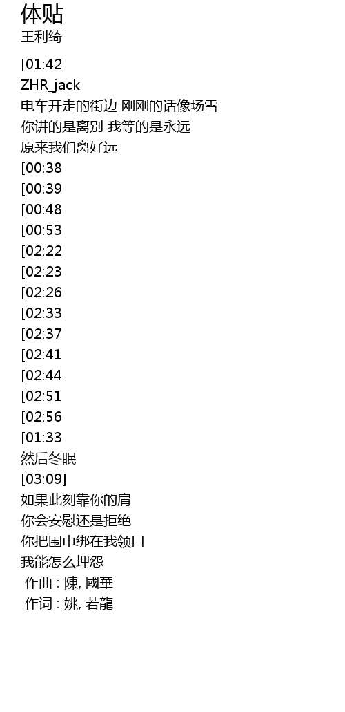 | [03:48][02:41][01:15] | tǐ tiē bù gāi zài lí bié |