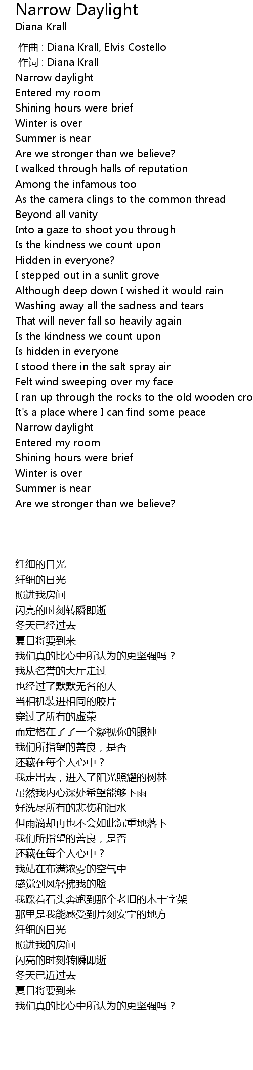 | [00:00.00] | 作曲 : Diana Krall, Elvis Costello |