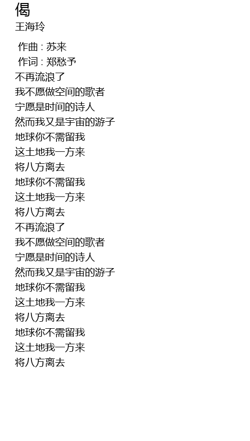 | [00:20.07] | 我不愿做空间的歌者 |