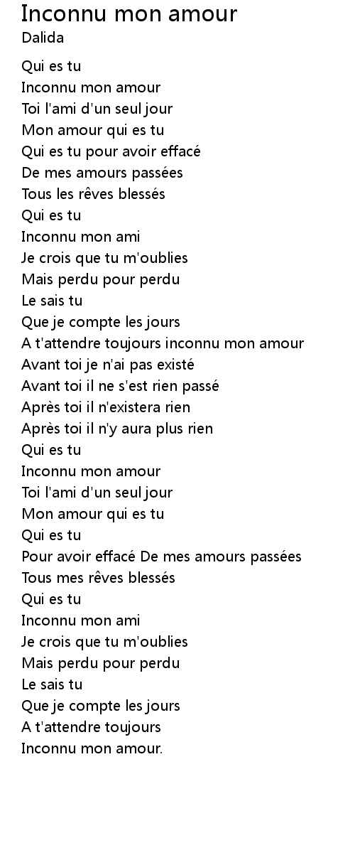 | Song | Inconnu mon amour |