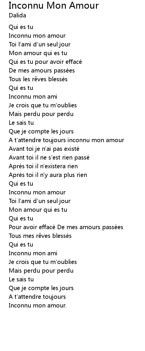 | Inconnu mon amour. |