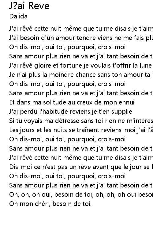 | J' ai r vé cette nuit m me que tu me disais je t' aime | |