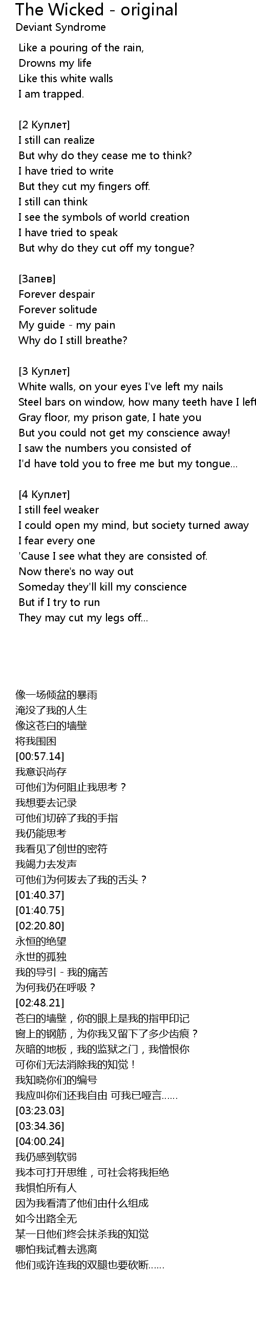 | Song | The Wicked - original |