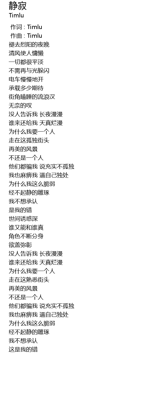 | [01:41.434] | 我也麻痹我 逼自己独处 |