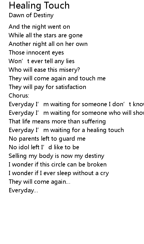| Everyday I’m waiting for a healing touch | |