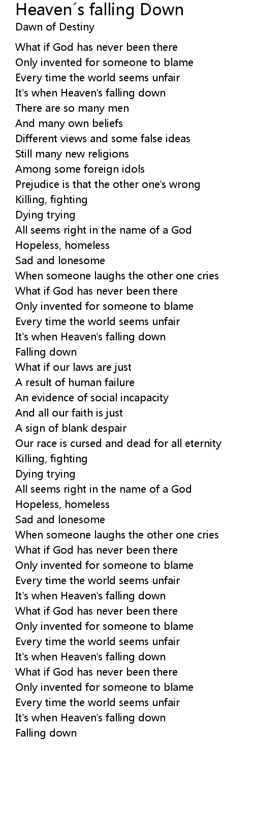 It's when Heaven's falling down |