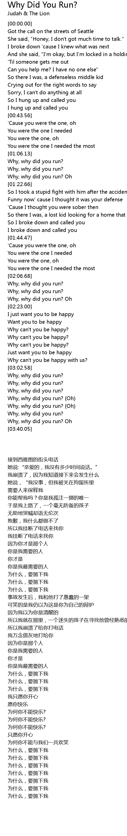 Why, why did you run? Oh |