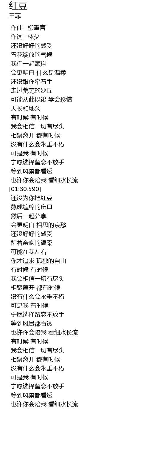 | [01:41.590] | hái méi wèi nǐ bǎ hóng dòu |