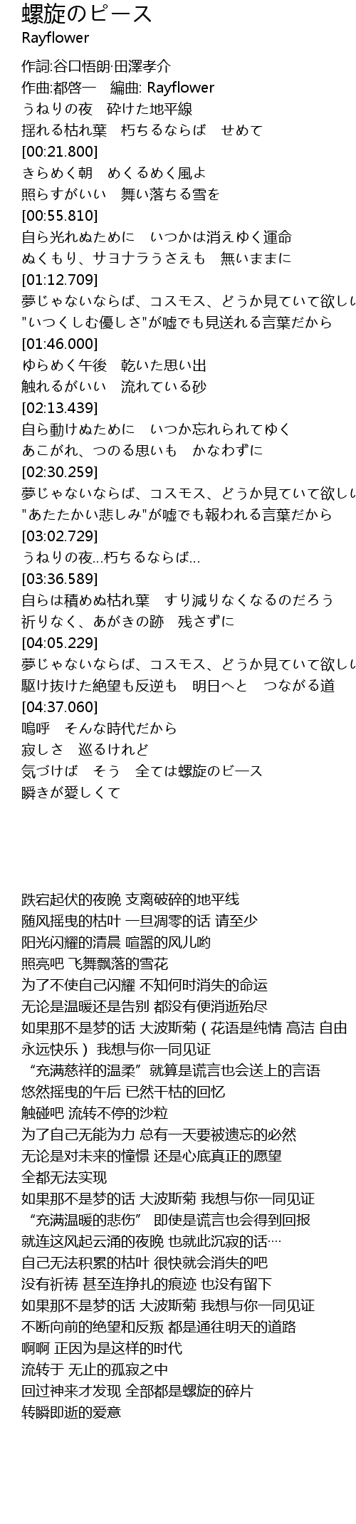 | [04:54.098] | 気づけば そう 全ては螺旋のビ一ス |