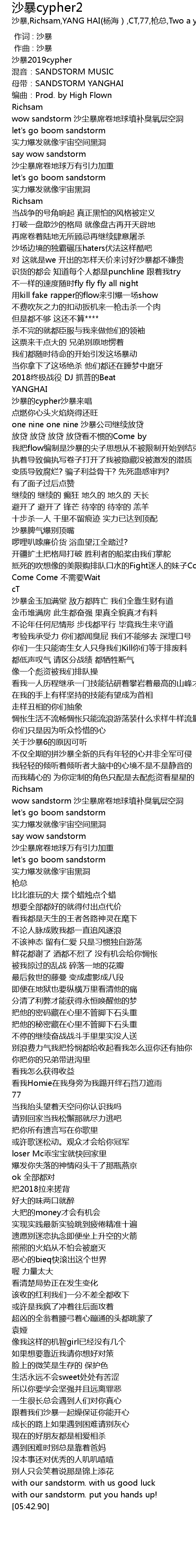 | [01:30.35] | 沙暴的cypher沙暴来唱 |