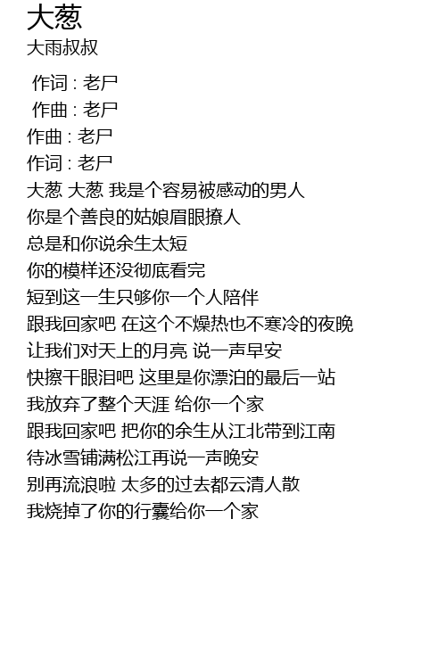 | [00:01.951] | 大葱 大葱 我是个容易被感动的男人 |