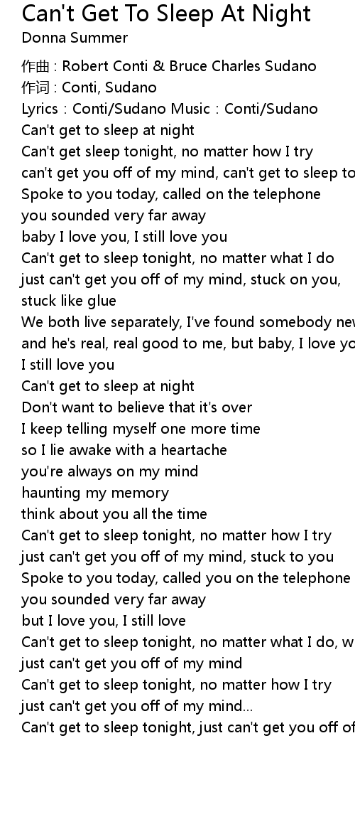 | can' t get you off of my mind, can' t get to sleep tonight | |