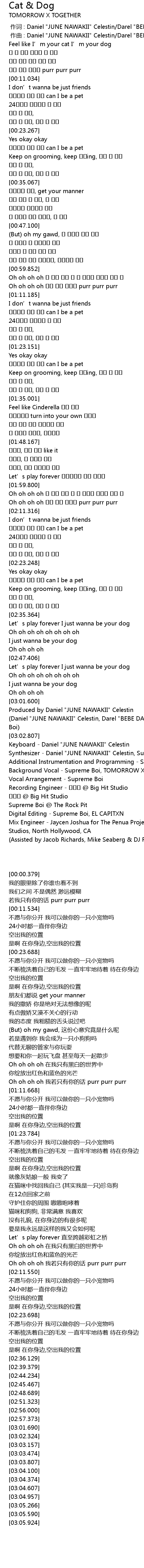 | [03:04.100] | Background Vocal Supreme Boi, TOMORROW X TOGETHER |