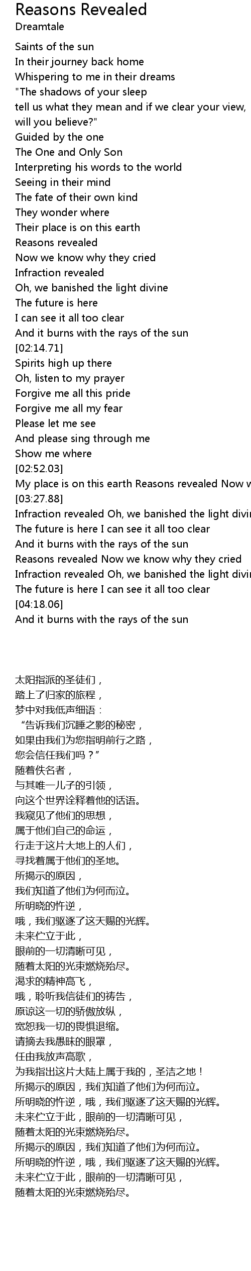 | [01:43.84] | Reasons revealed |