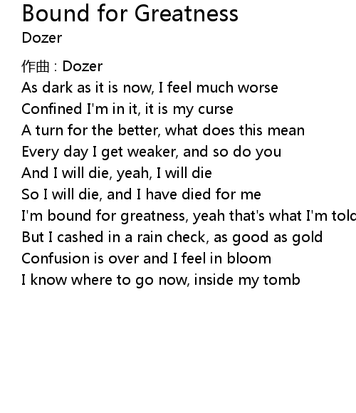 | Song | Bound for Greatness |