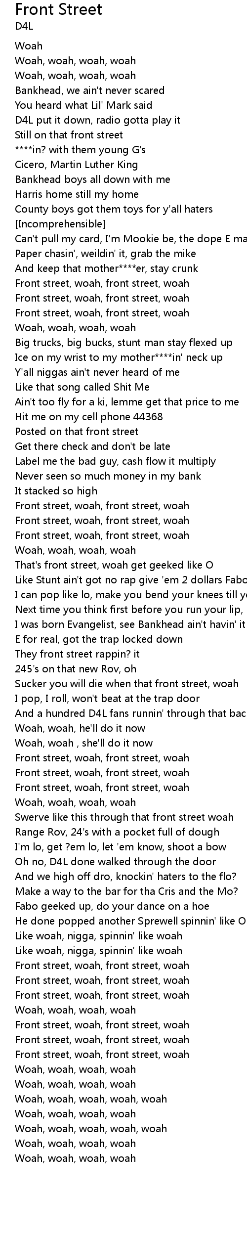 Front street, woah, front street, woah |