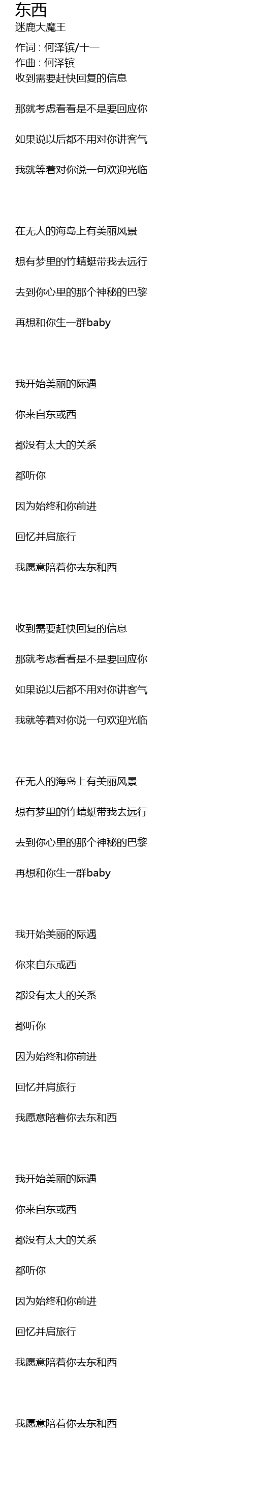 | 作词 : 何泽镔/十一 | |