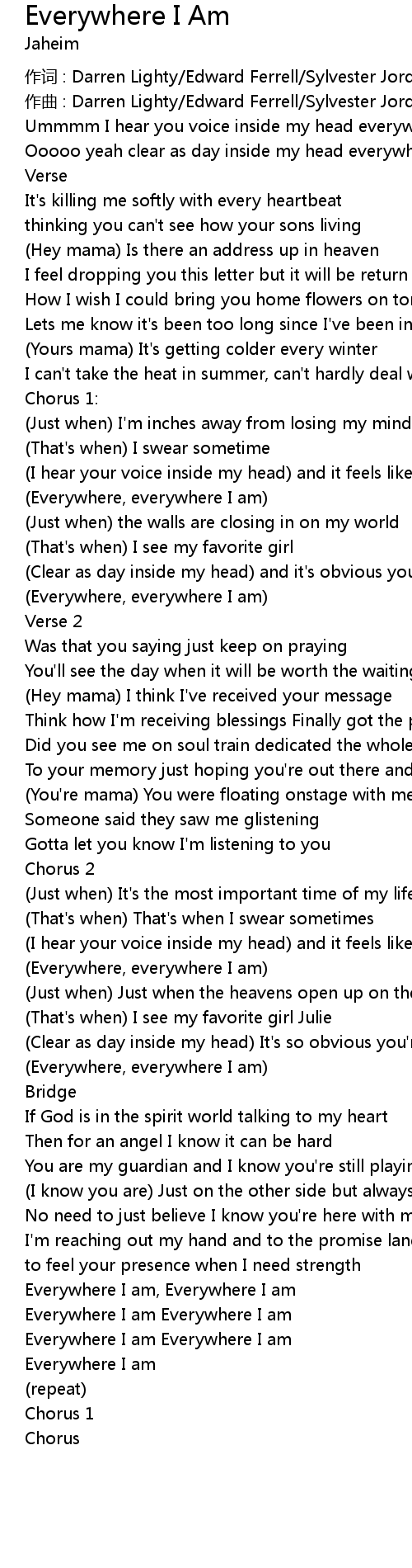 | Everywhere, everywhere I am | |