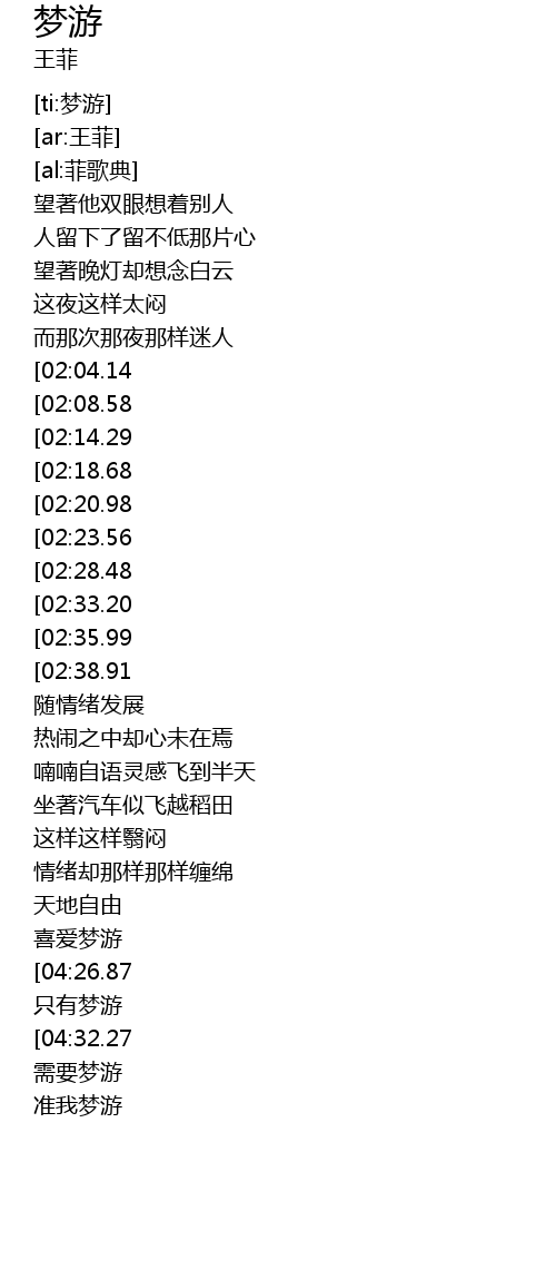 | [04:29.86] | 准我梦游 |