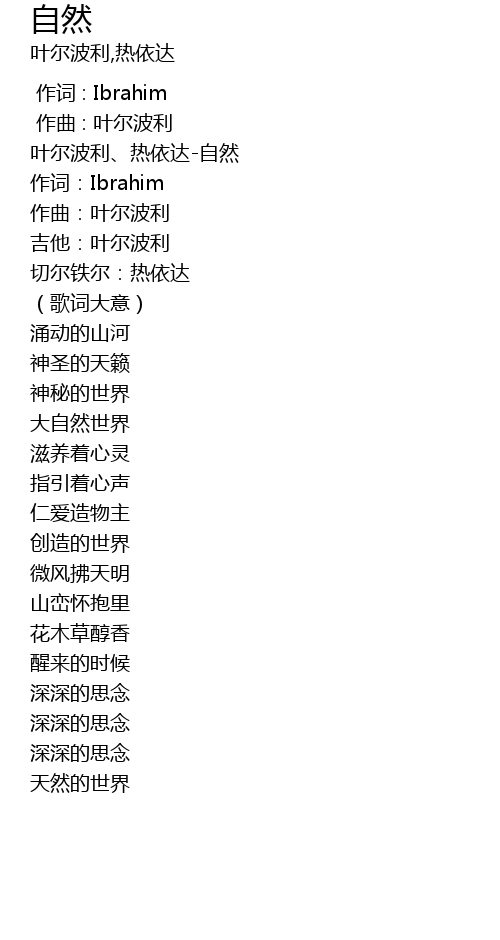| [00:00.215] | 叶尔波利、热依达-自然 |