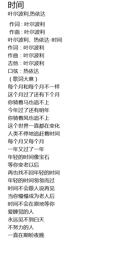 | [00:00.23] | 叶尔波利、热依达-时间 |
