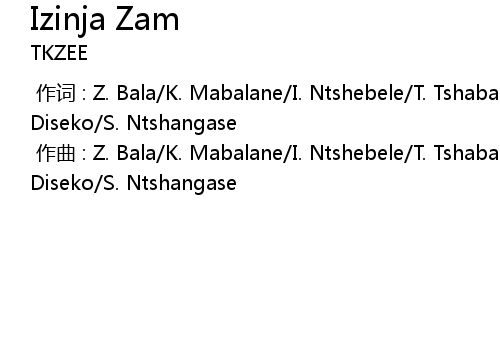 | [00:00.000] | zuò qǔ : Z. Bala K. Mabalane I. Ntshebele T. Tshabalala Kagiso Diseko S. Ntshangase |