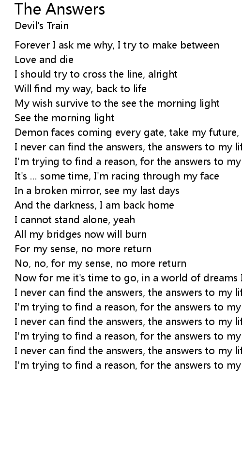 I'm trying to find a reason, for the answers to my life, alright, alright |