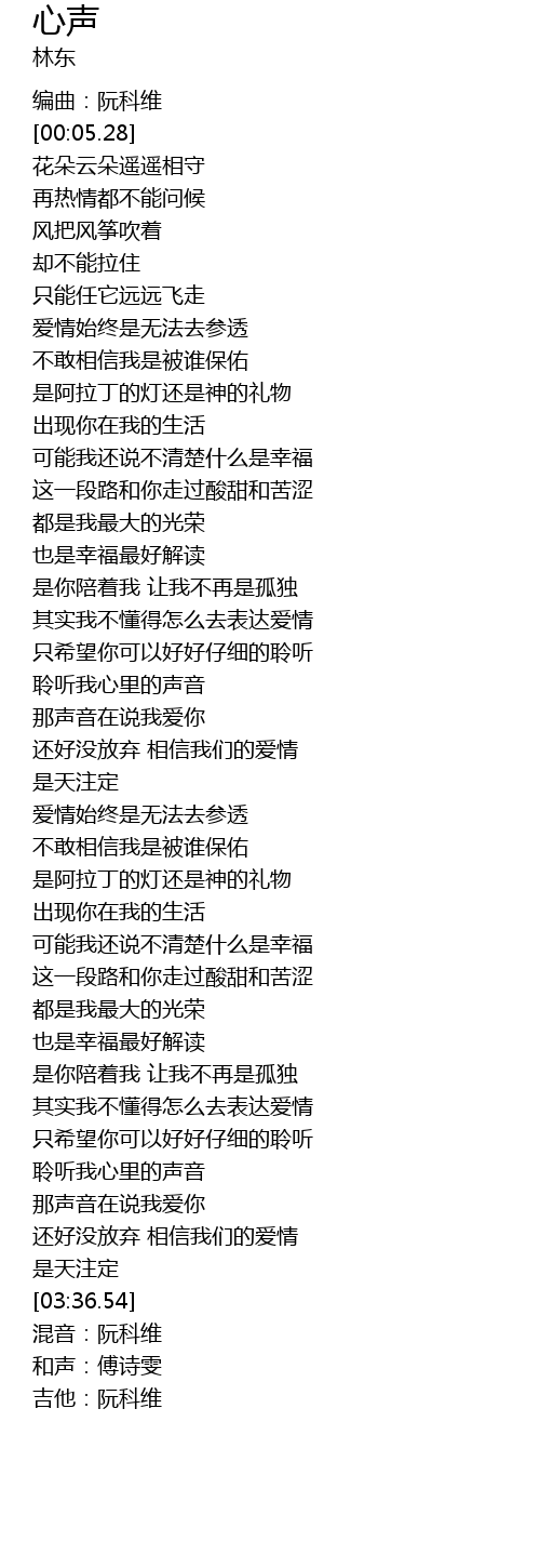| [03:17.30] | ling ting wo xin li de sheng yin |