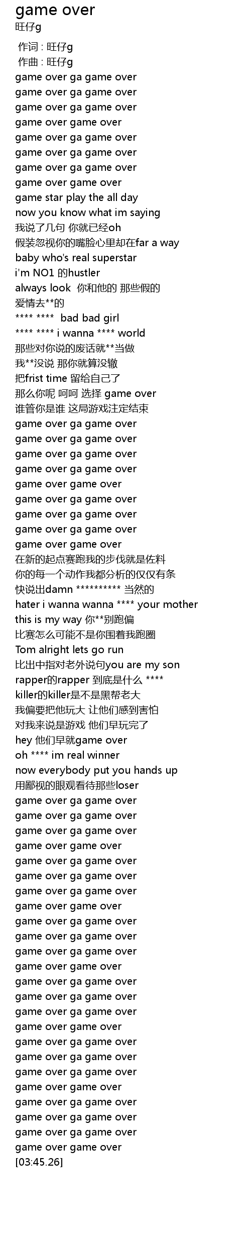 | [01:01.40] | na me ni ne he he xuan ze game over |