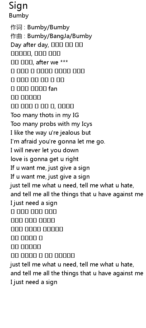 | [01:07.27] | If u want me, just give a sign |