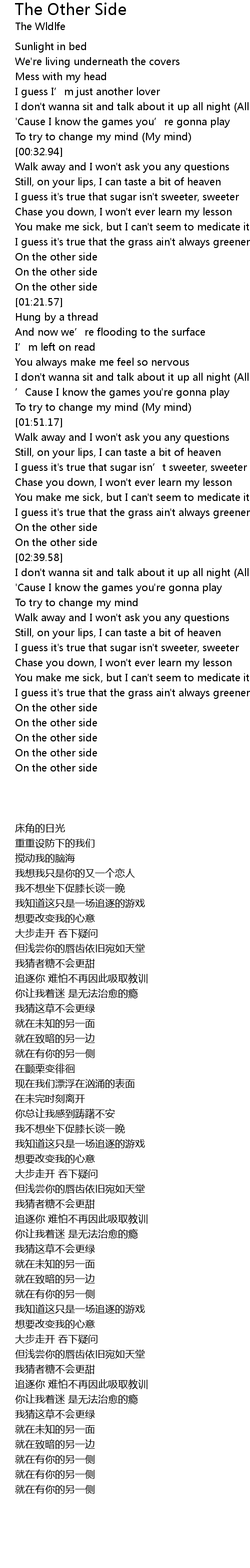 | [02:30.52] | On the other side |