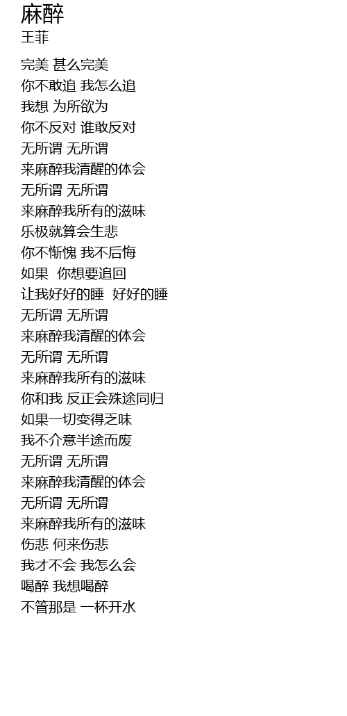 | [02:29.0] | 来麻醉我清醒的体会 |
