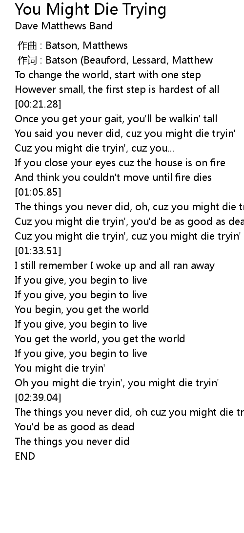 | [01:27.93] | Cuz you might die tryin', cuz you might die tryin' |