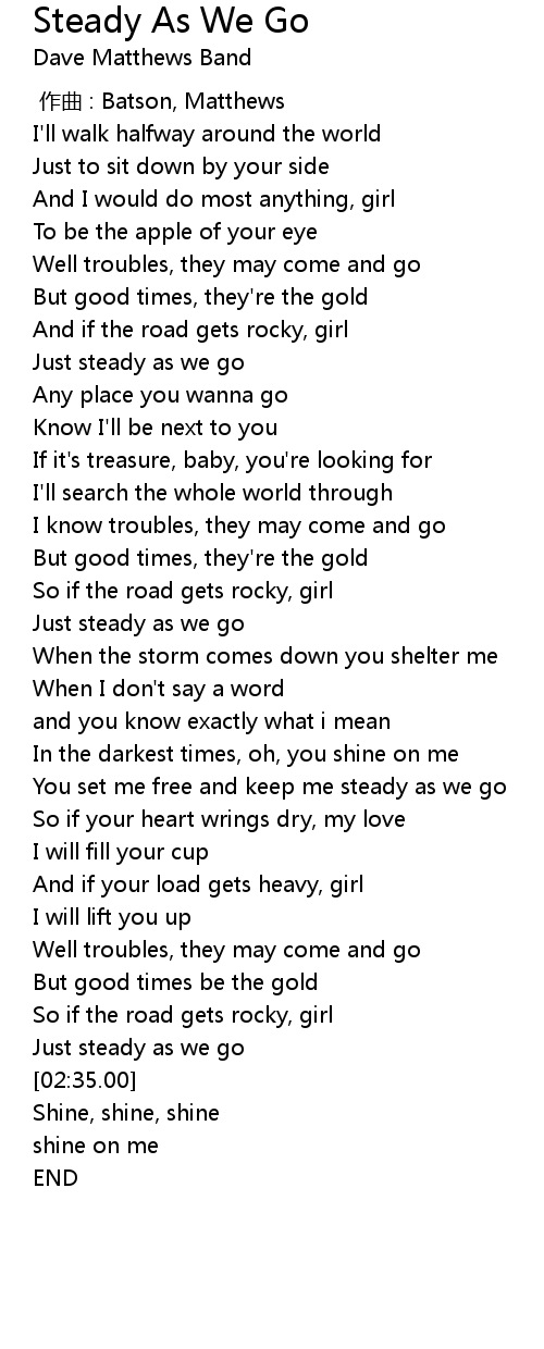 | [00:42.78] | Just steady as we go |