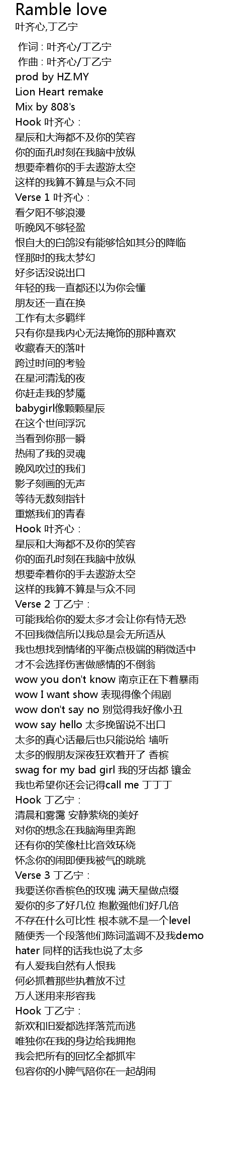 | [01:43.377] | Verse 2 dīng yǐ níng: |