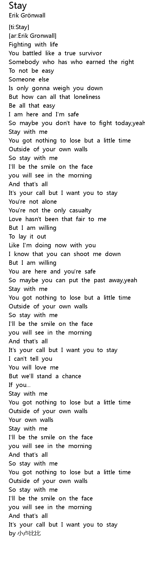 | [01:55.76] | Stay with me |