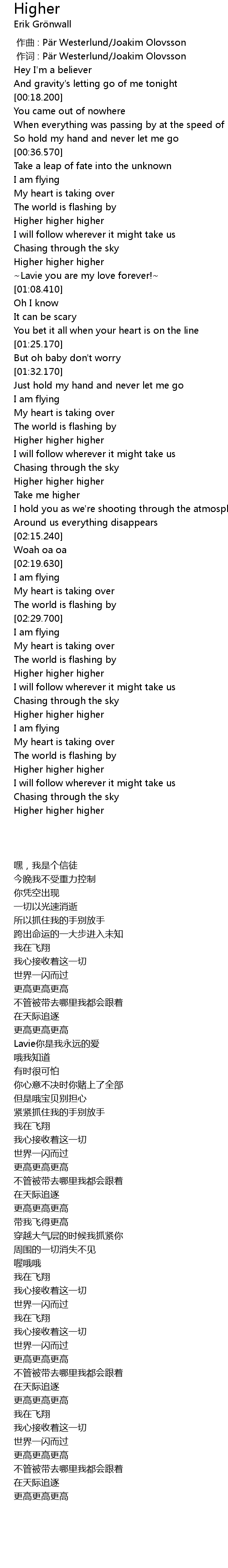 | [03:02.770] | Higher higher higher |
