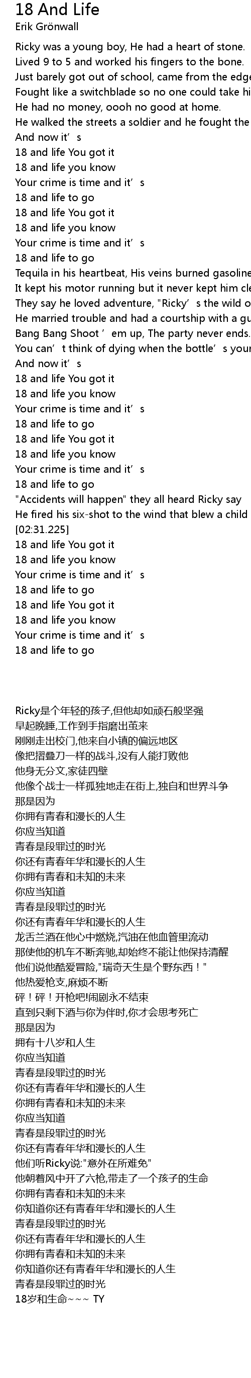 | [03:00.178] | 18 and life you know |