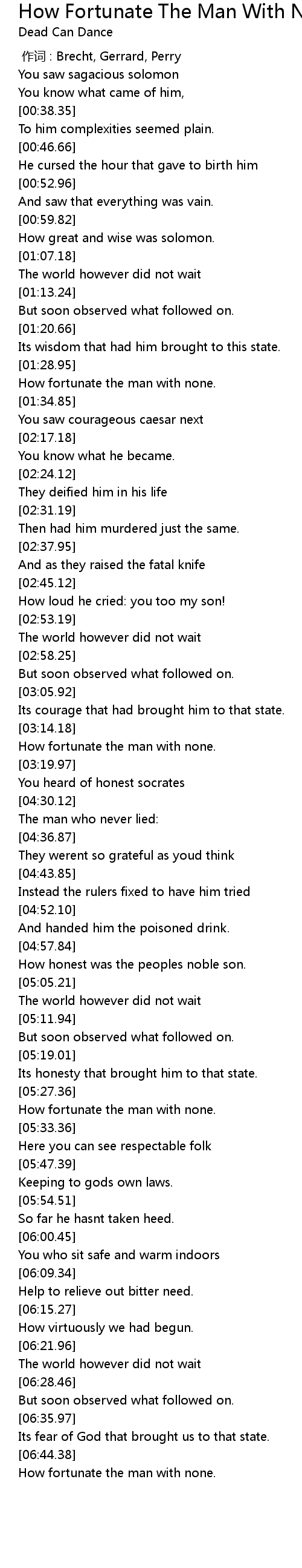 | [06:45.44] | How fortunate the man with none. |