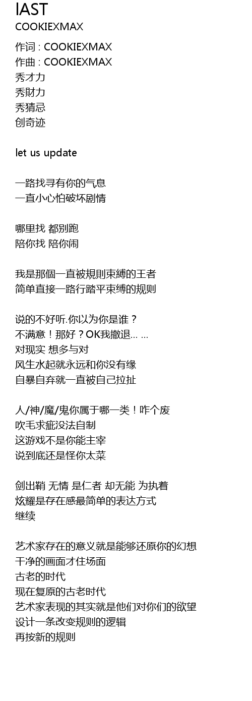 | 作词 : COOKIEXMAX | |