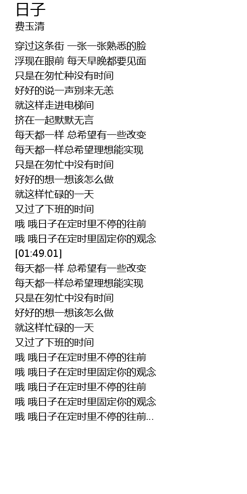 | [03:04.01] | 哦 哦日子在定时里不停的往前 |