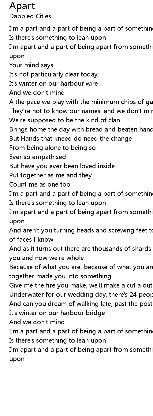 I'm apart and a part of being apart from something is there's nothing to lean upon |
