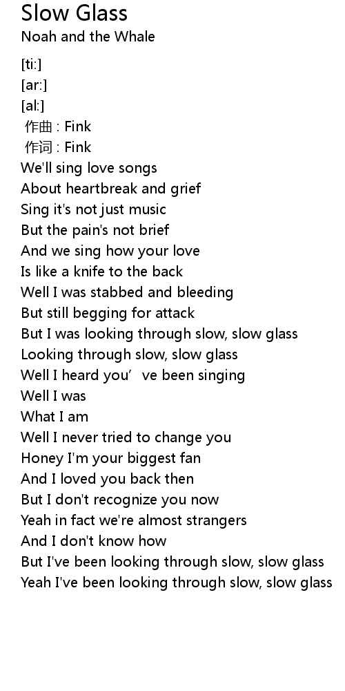 | [01:50.27] | Yeah I' ve been looking through slow, slow glass |