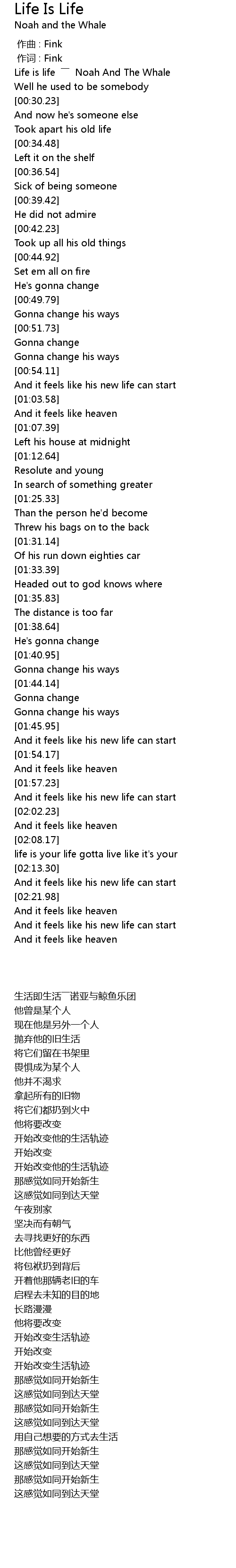 | [00:00.60] | Life is life ―― Noah And The Whale |