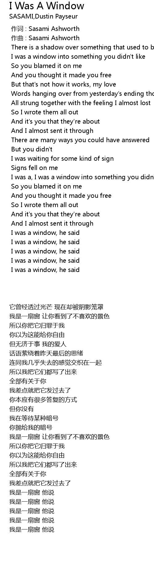 | [03:10.738] | I was a window, he said |