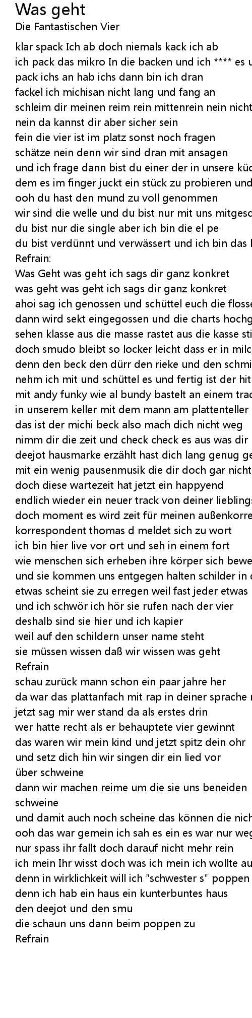 | Song | Was geht |