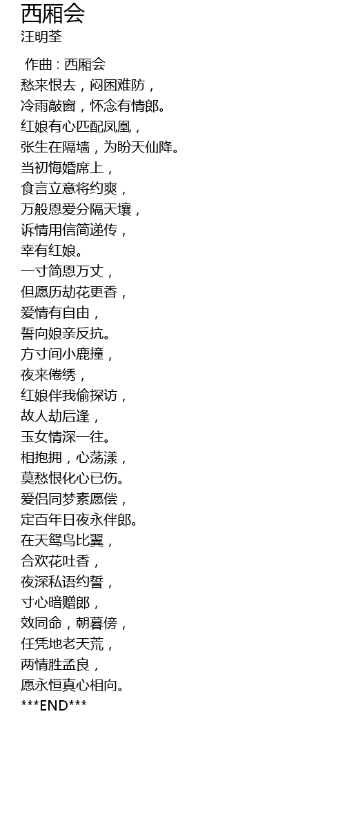 | [00:24.52] | 张生在隔墙,为盼天仙降。 |