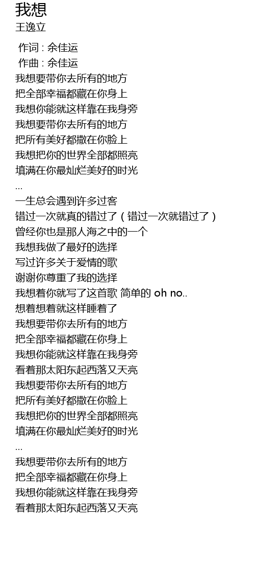 | [03:44.504] | 我想你能就这样靠在我身旁 |