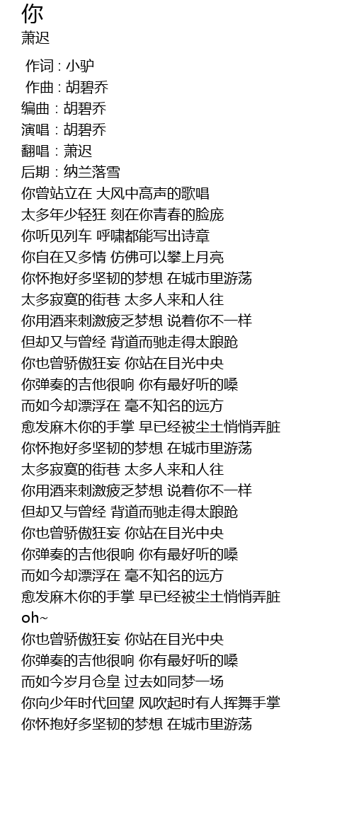 | [00:07.59] | 翻唱:萧迟 |